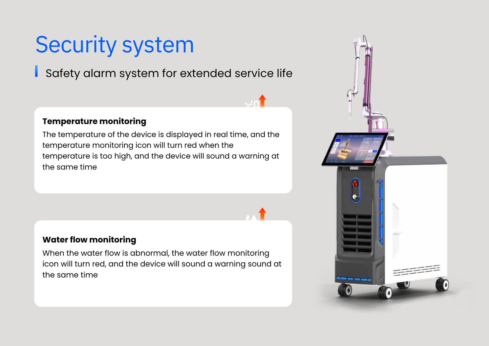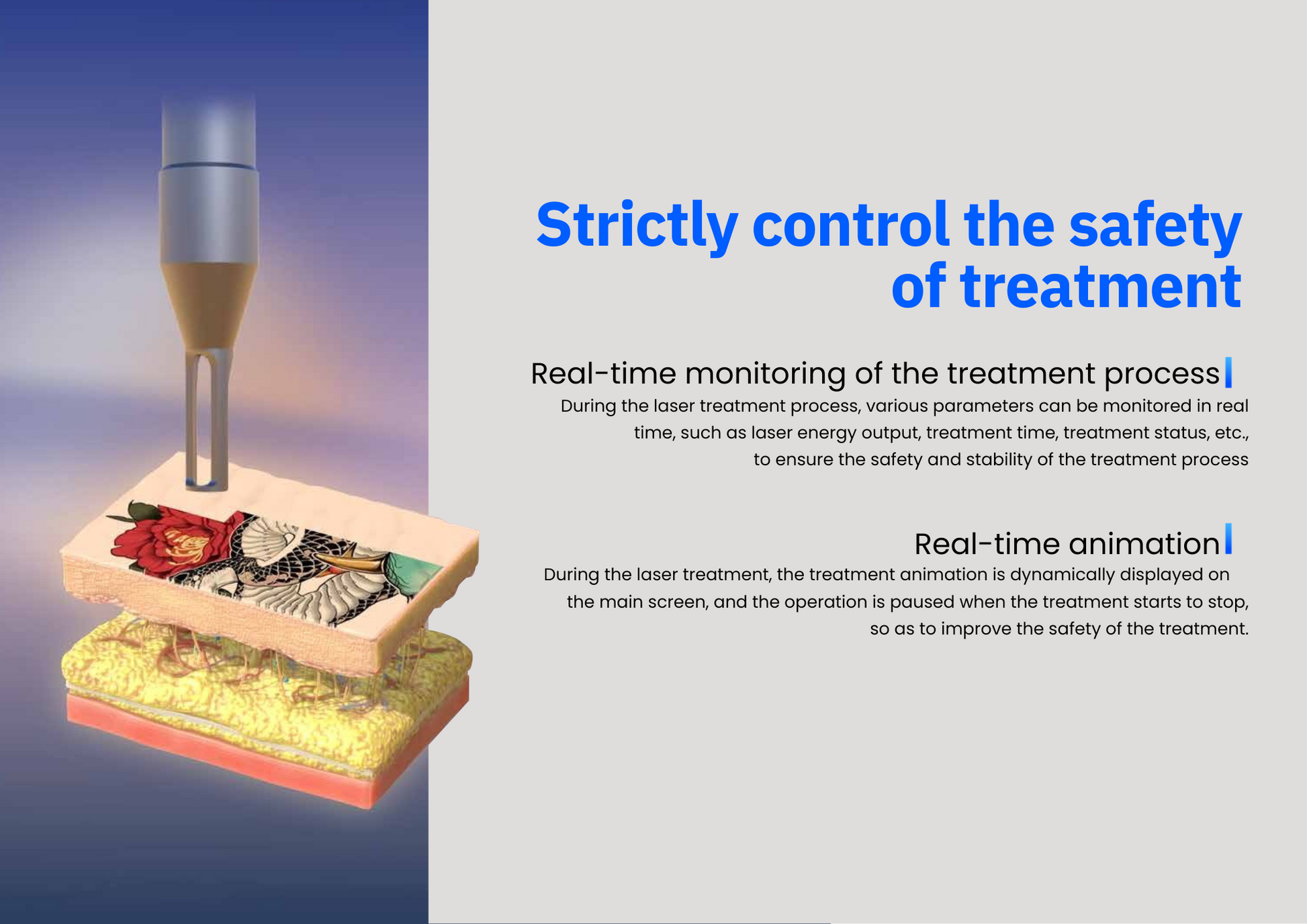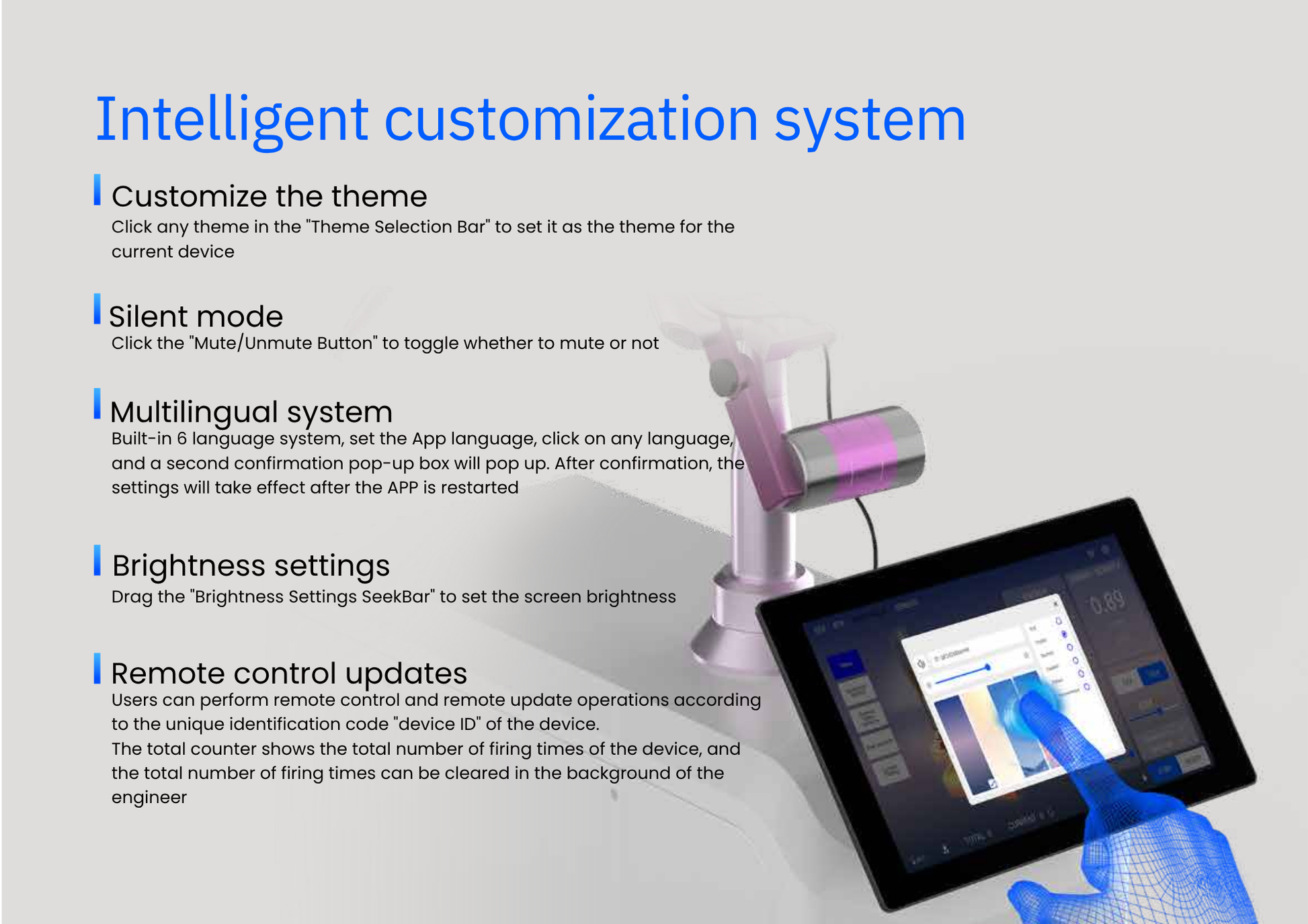 Features like a real-time animated treatment interface, remote updates, multilingual support, customizable UI, and intelligent safety alarms make it a standout choice for modern aesthetic practices.