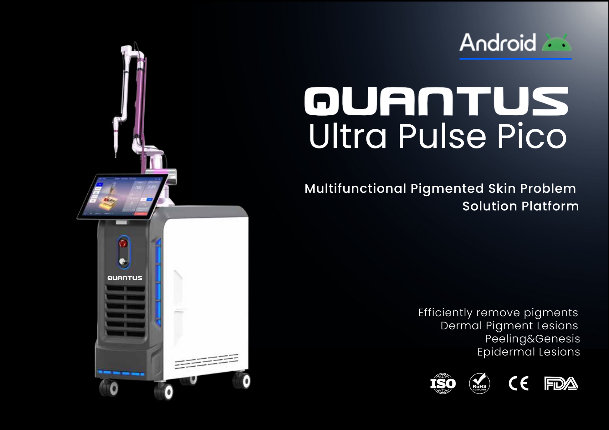 With clinically backed performance and a sleek HD touchscreen interface, the Quantus Picoluxe Ultra is your all-in-one solution for pigment correction, skin rejuvenation, and advanced aesthetic treatments.