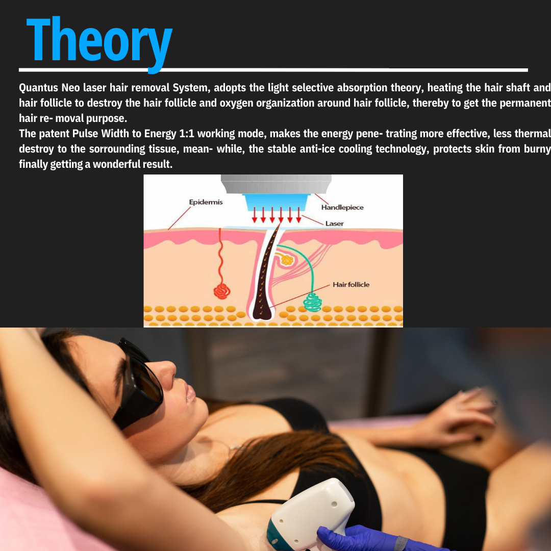 5.Safety: Normal skin tissue absorbs less 808NM laser light, and hair follicles absorb more melanin, ensuring that all energy is applied to hair follicles. At the same time, the skin tissue around the hair follicle is intact.