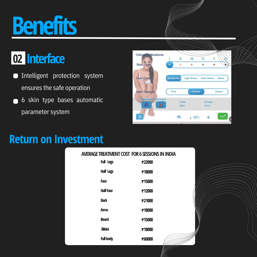8.Curative effect: The high energy density output of the coherent imported laser ensures that the laser energy acting on the hair is stronger and the effect is better.