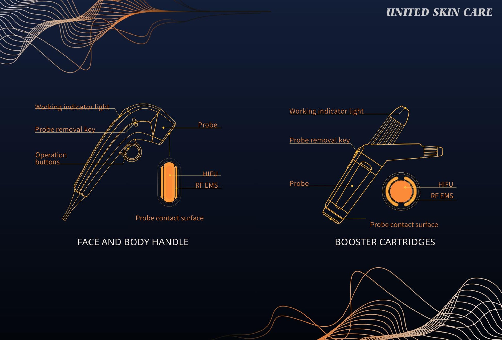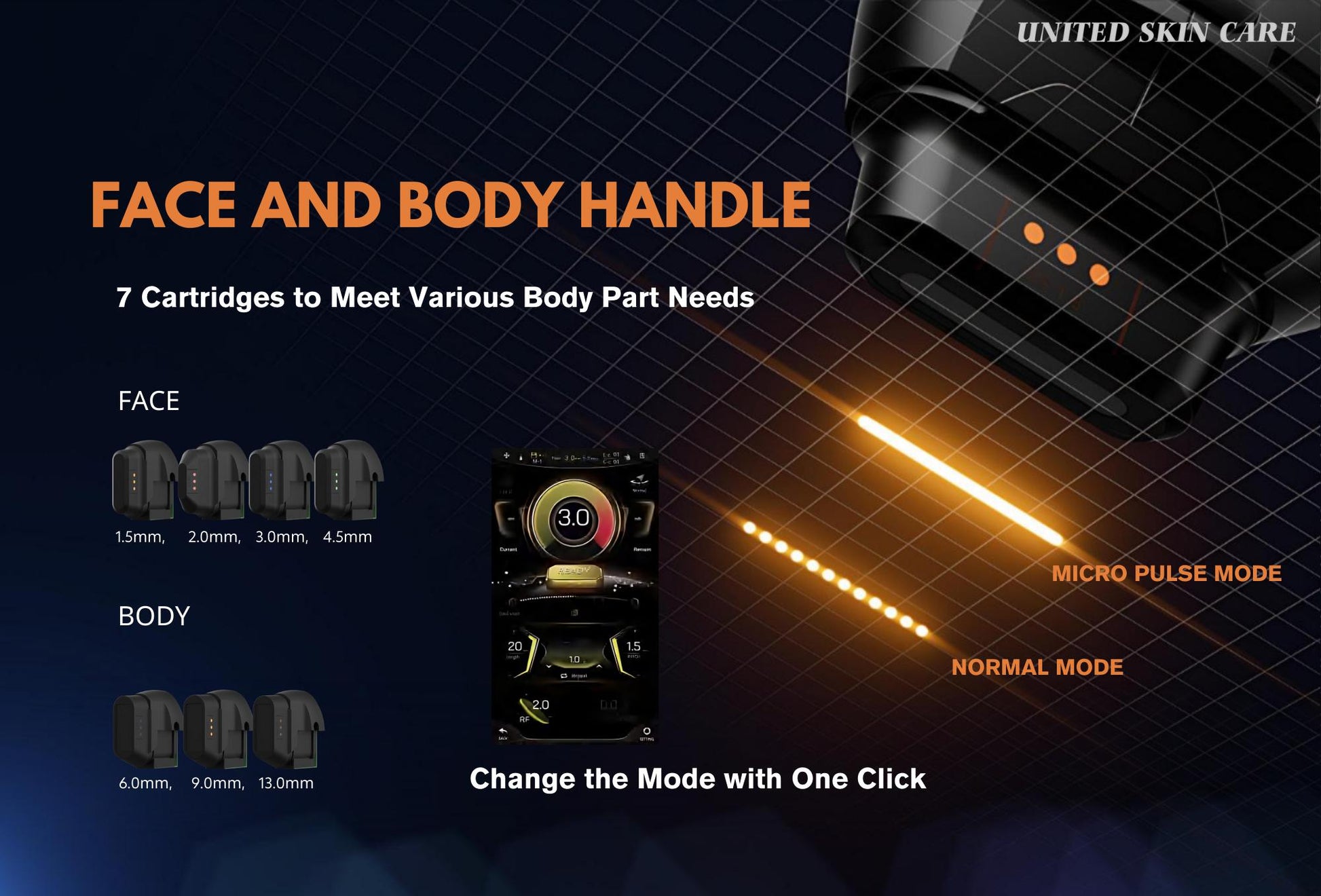 Face & Body Handle – Covers larger treatment zones with ultra-pulse shock wave technology for powerful skin tightening and fat reduction.