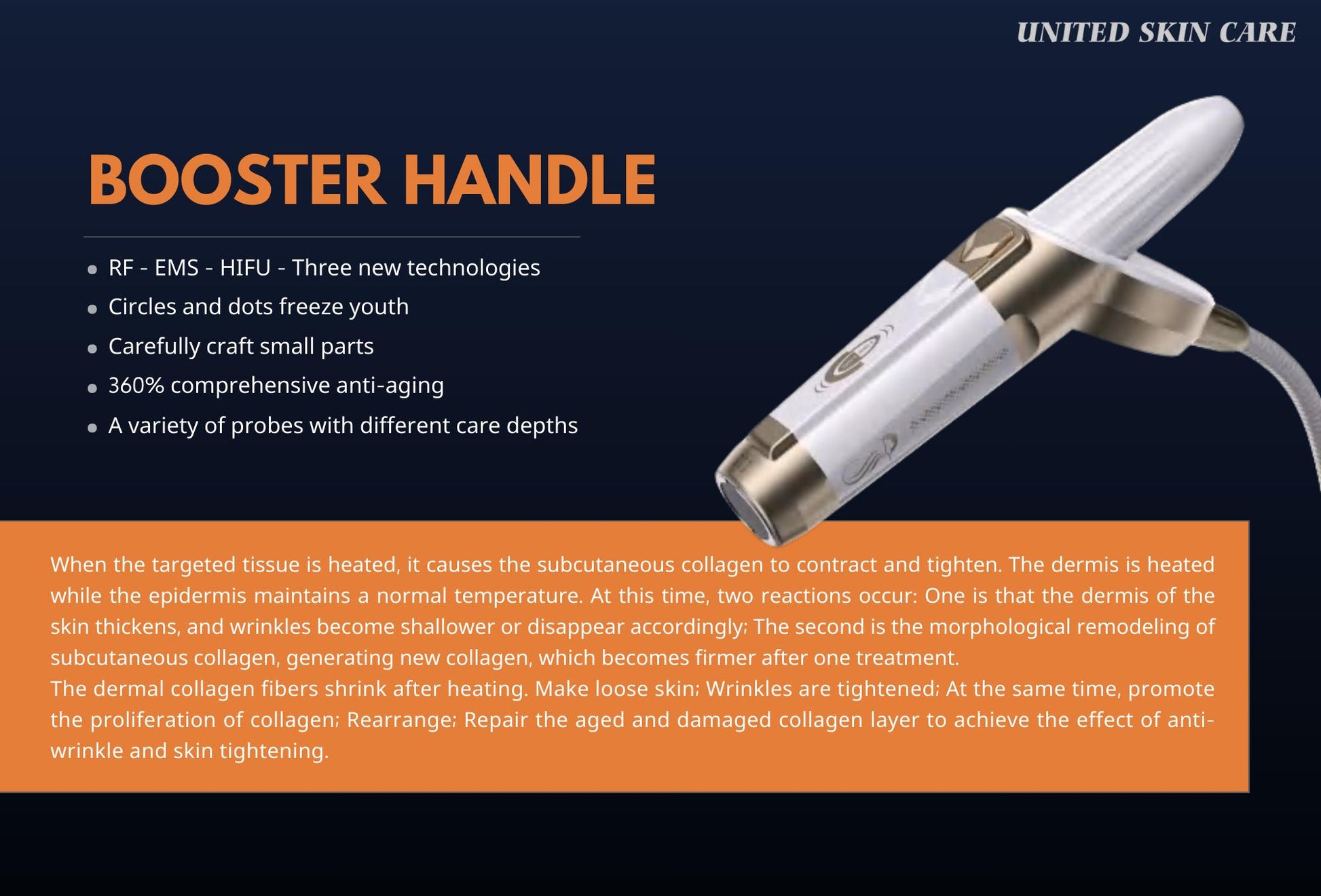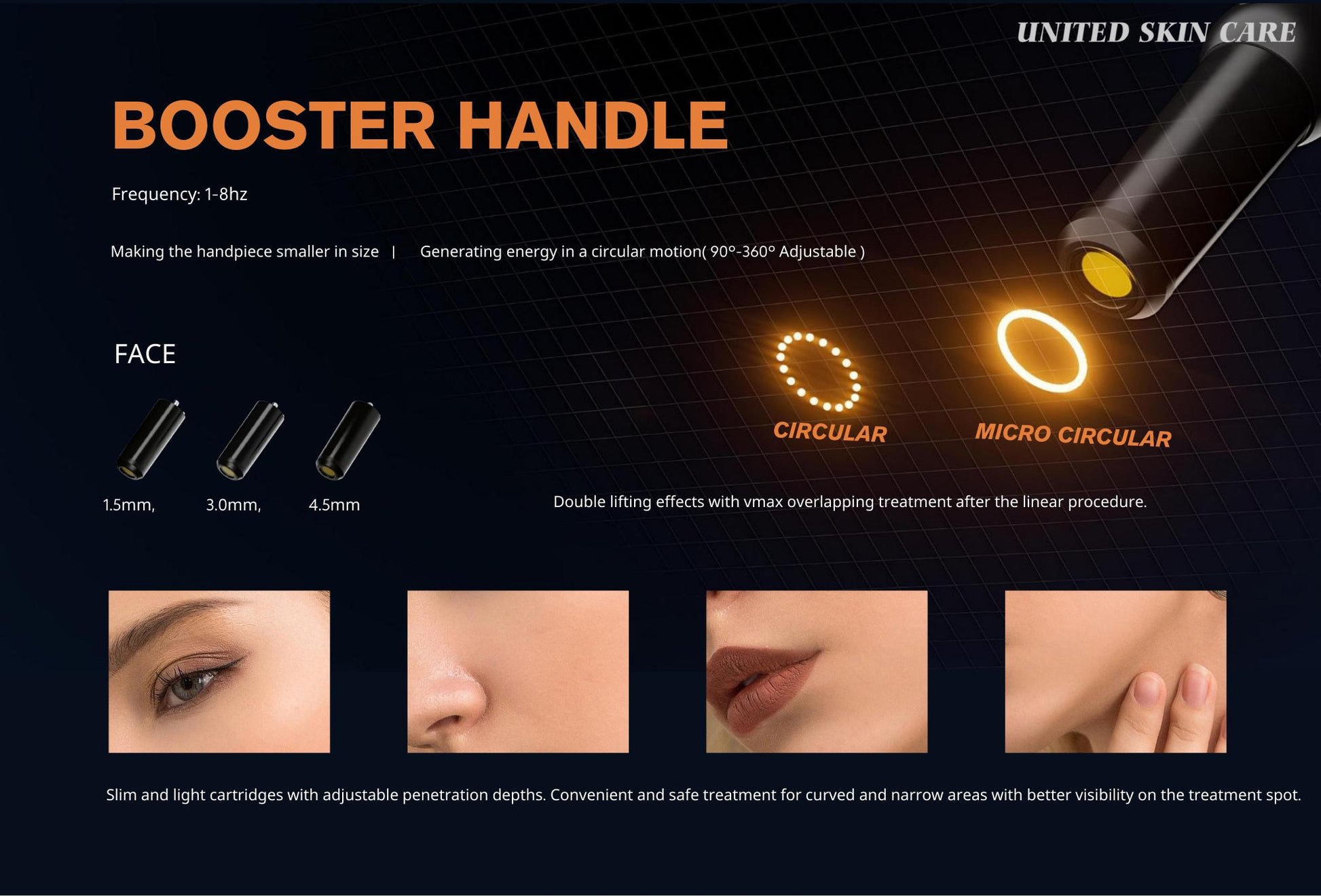 Booster Handle – Ideal for delicate areas and precise lifting with 360° anti-aging effects.