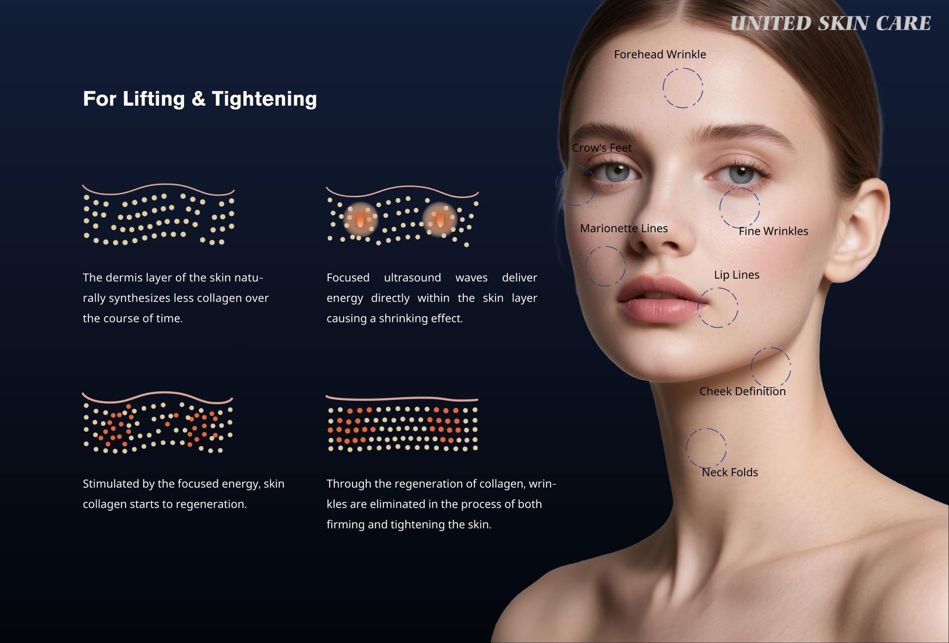 Versatile applications: face lifting, wrinkle reduction, body contouring, skin tightening