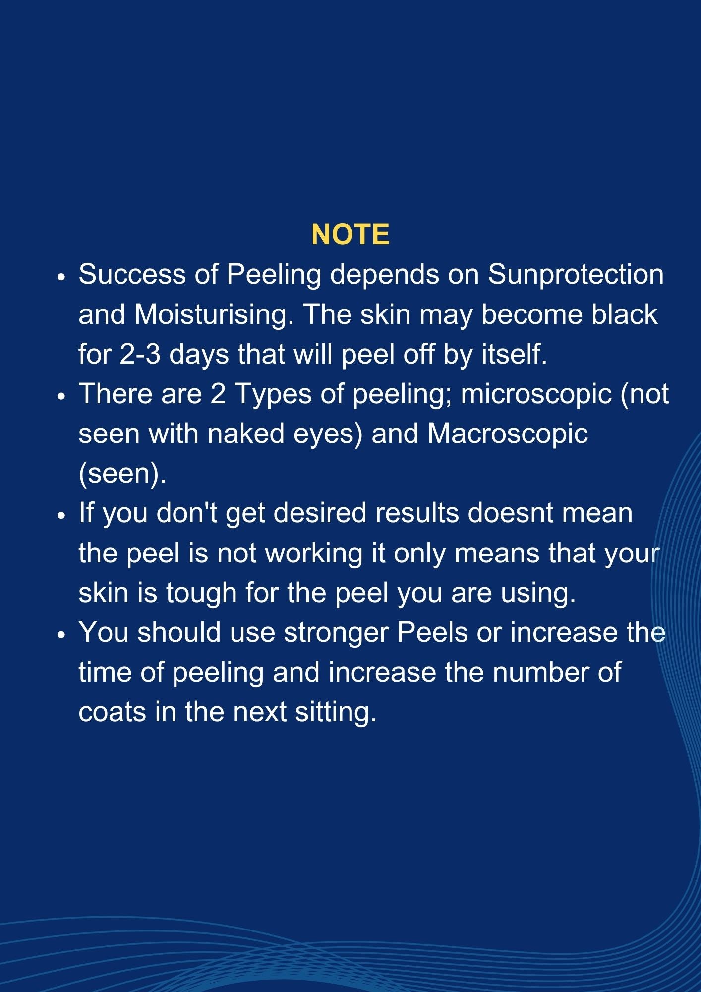 Note: If You Don't Get Desired Results Doesn't Mean The Peel Is Not Working It Only Means That Your Skin Is Tough For The Peel You Are Using. Then Its Time To use Stronger Peels Or Increase The Application Time Of The Peel In The Next Sitting.