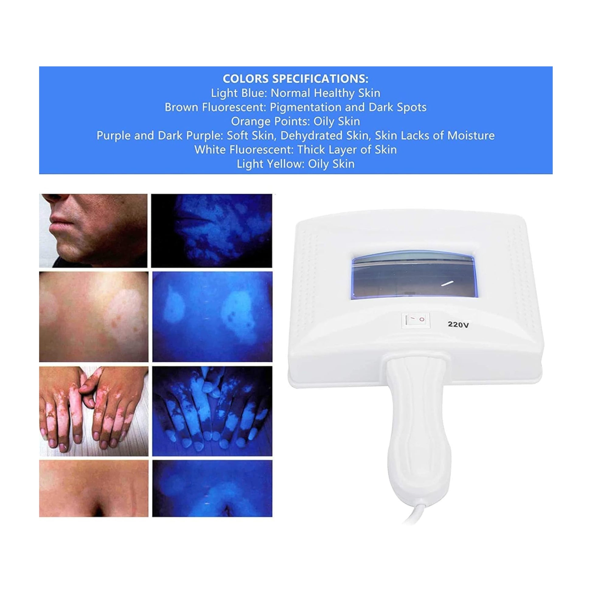- It uses 4 pieces T5 ultraviolet lamp tubes, has a 3 times diopter magnifying lens and uses UV light to diagnose skin conditions